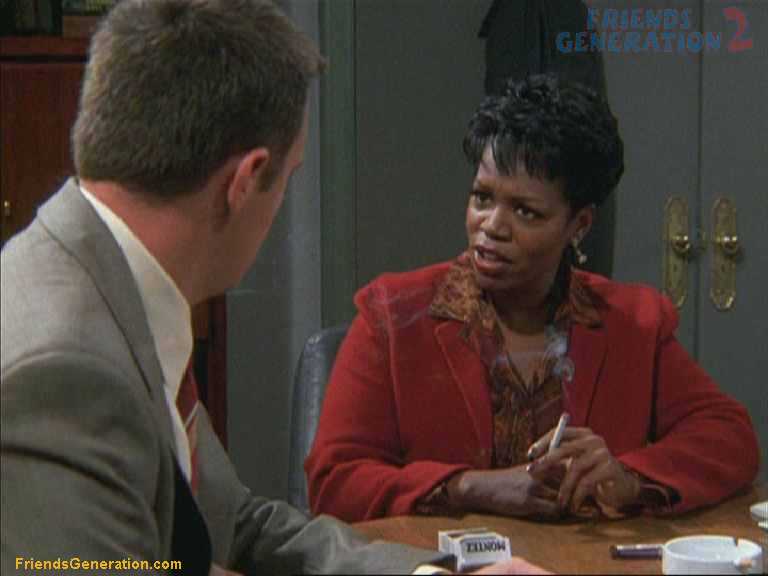 Elle fume au cours de la réunion, ce qui ne plait guère à Chandler qui se trouve juste à côté d’elle. Elle lui apprend alors qu’il est autorisé de fumer dans un bureau en Oklahoma.